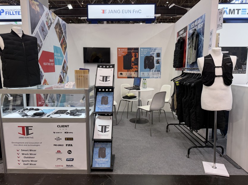 JANG EUN FnC has consistently introduced its functional apparel technologies on the global stage through major international exhibitions such as CES, TECHTEXTIL, and Outdoor Retailer Show. As part of this ongoing global exhibition strategy, the company shared the results of its participation in A+A 2025, held last November, highlighting product competitiveness and market response.