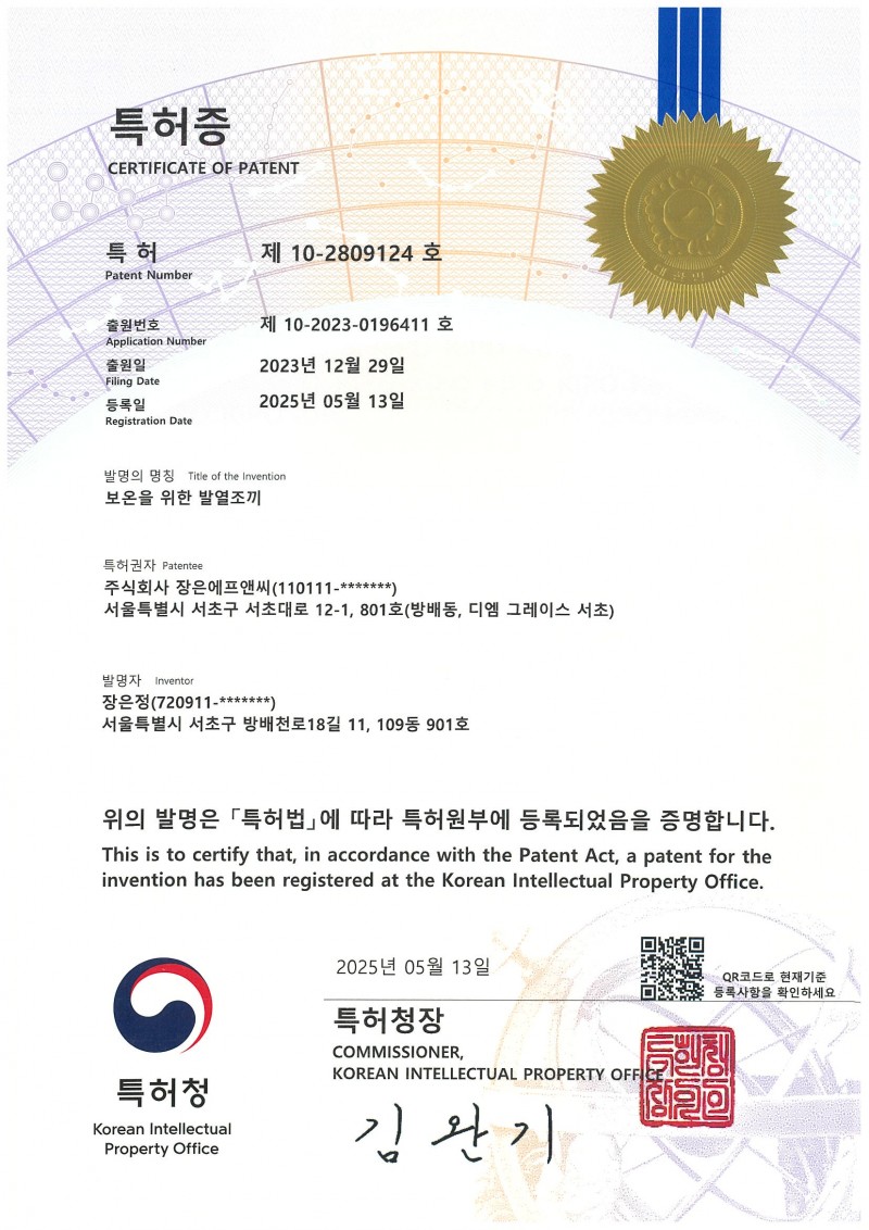 Intellectual Property Rights | Patent No.10-2809124 페이지 정보 Name 최고관리자 작성일26-01-29 09:22 Hit 12 본문 Patent No.10-2809124 File PrevDesign Registration No.30-1324657 26.01.29 NextPatent No.10-2809125 26.01.29 검색 List