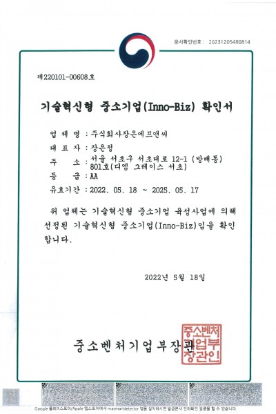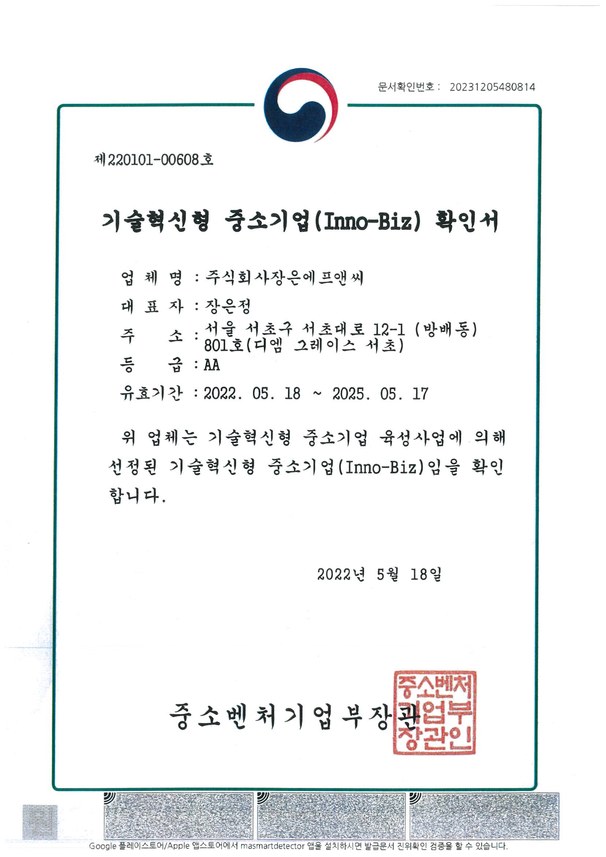 기술혁신형 중소기업(Inno-Biz) 확인서