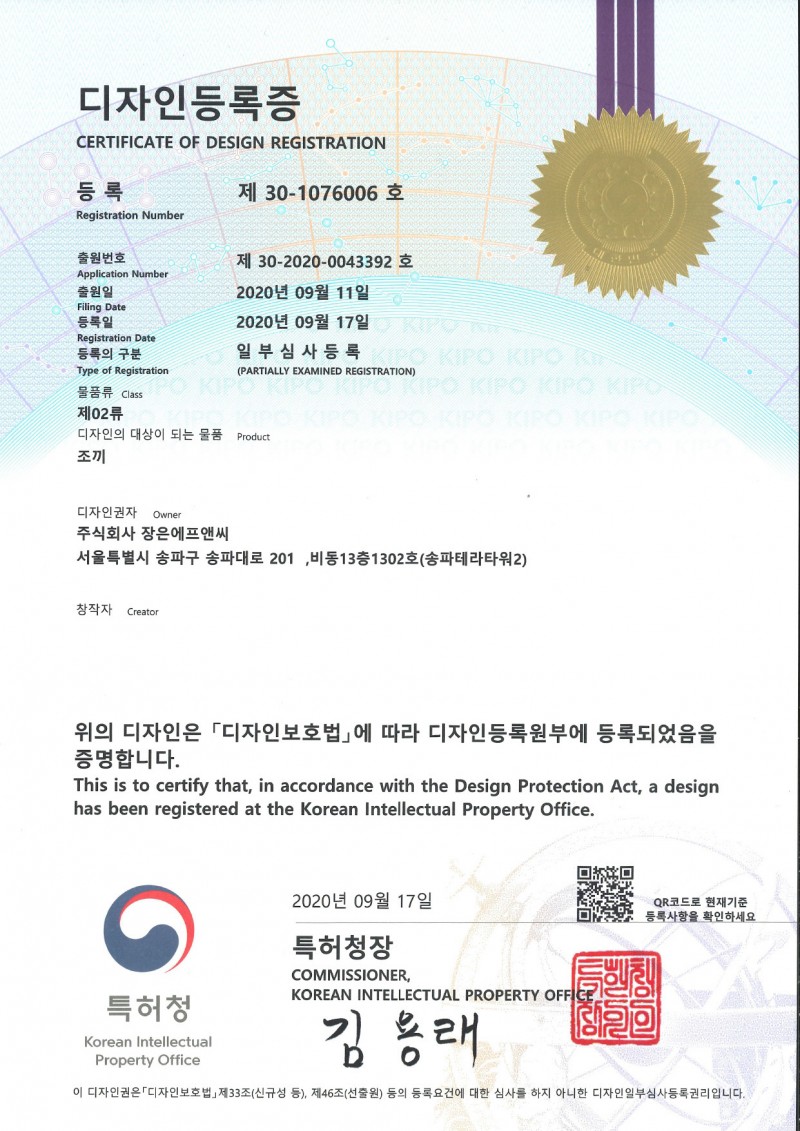 지적재산권 | 디자인등록증 제 30-1076006 호 페이지 정보 작성자 최고관리자 작성일24-04-03 15:13 조회806회 본문 디자인등록증 제 30-1076006 호 첨부파일 디자인등록증 제 30-1076006 호.pdf (213.5K) 5회 다운로드 이전글디자인등록증 제 30-1106329 호 24.04.03 다음글디자인등록증 제 30-1042143 호 24.04.03 목록