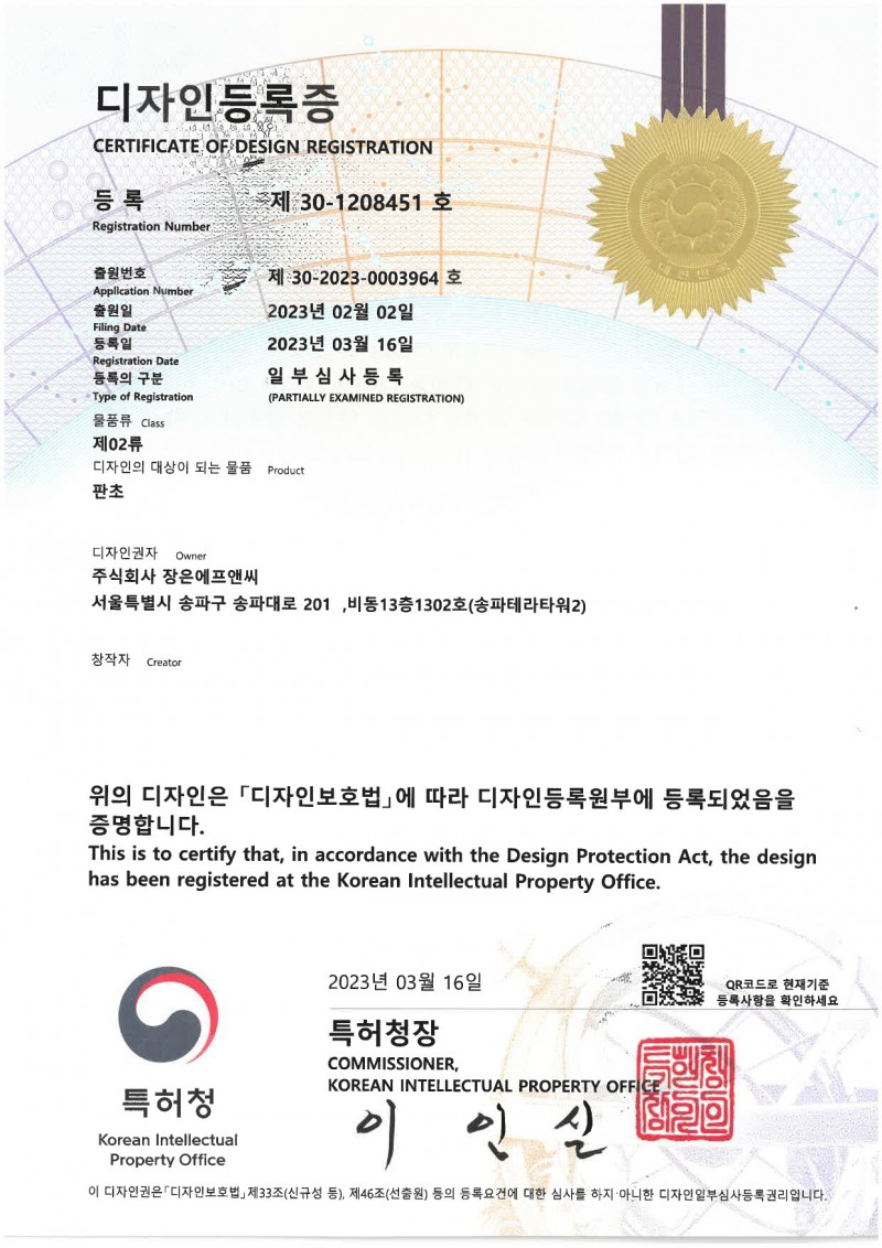 지적재산권 | 디자인등록증 제 30-1208451 호 페이지 정보 작성자 최고관리자 작성일24-04-03 15:16 조회681회 본문 디자인등록증 제 30-1208451 호 첨부파일 디자인등록증 제 30-1208451 호.pdf (188.1K) 4회 다운로드 이전글디자인등록증 제 30-1247329 호 24.04.03 다음글디자인등록증 제 30-1208446 호 24.04.03 목록