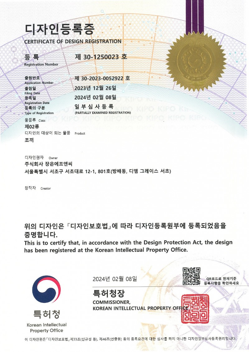 지적재산권 | 디자인등록증 제 30-1250023 호 페이지 정보 작성자 최고관리자 작성일24-04-03 15:19 조회1,013회 본문 디자인등록증 제 30-1250023 호 첨부파일 디자인등록증 제 30-1250023 호.pdf (223.7K) 8회 다운로드 이전글디자인등록증 제 30-1250024 호 24.04.03 다음글디자인등록증 제 30-1250022 호 24.04.03 목록